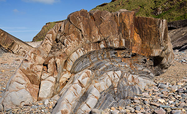 • Walkers can see perfect zig-zag folds, tilted strata, ripple marks, faults, and other dramatic features — especially around Millook Haven.