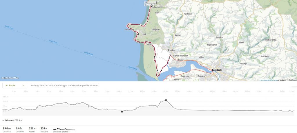 From Putsborough, we began the Baggy Point loop — one of the few areas of elevation on this leg. We ascended gently along the coastal trail that follows the cliff top edge around Baggy Point itself towards Croyde.