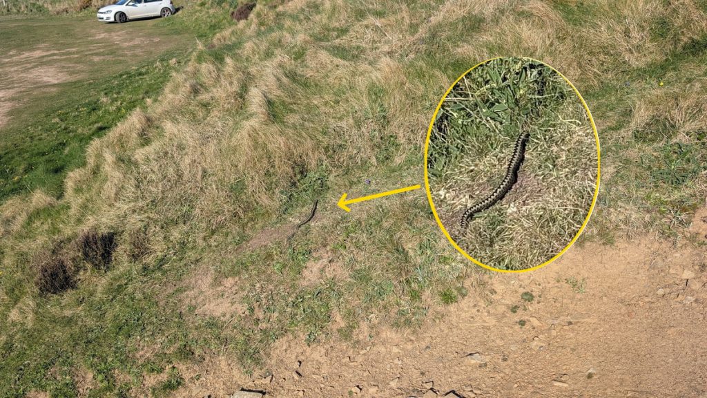 The final descent to Hartland Quay was steep but a welcome sight after the ups and downs of the day. As we took a short diversion towards the car park, we were surprised to find an adder basking in the sun on the rocky track. Fortunately, it noticed us before Roxie noticed it and quickly slipped away into the grass. With the excitement over, we continued on to the car and then drove down to the Hartland Quay Hotel.