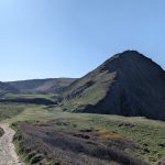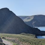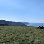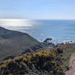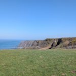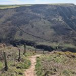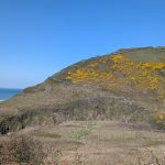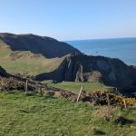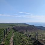 A grassy Iron Age hillfort site offering expansive sea views in all directions—followed by the second major descent.
