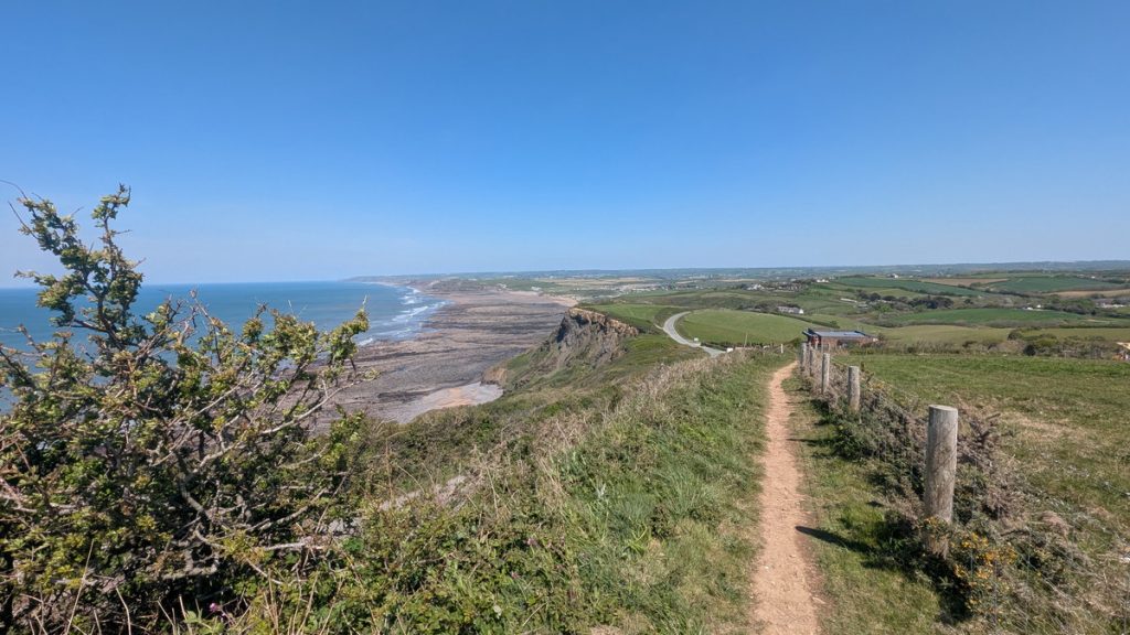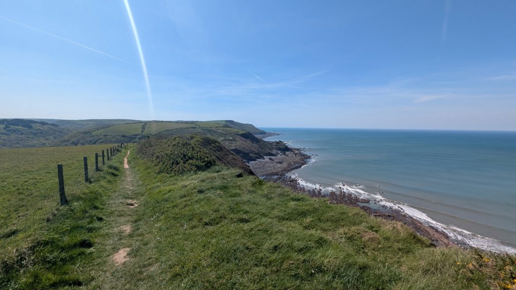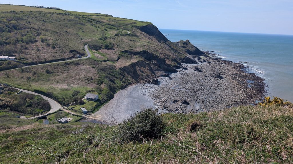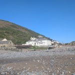 A small coastal settlement with a beach, car park, and the welcome sight of the Coombe Barton Inn for a well-earned drink.