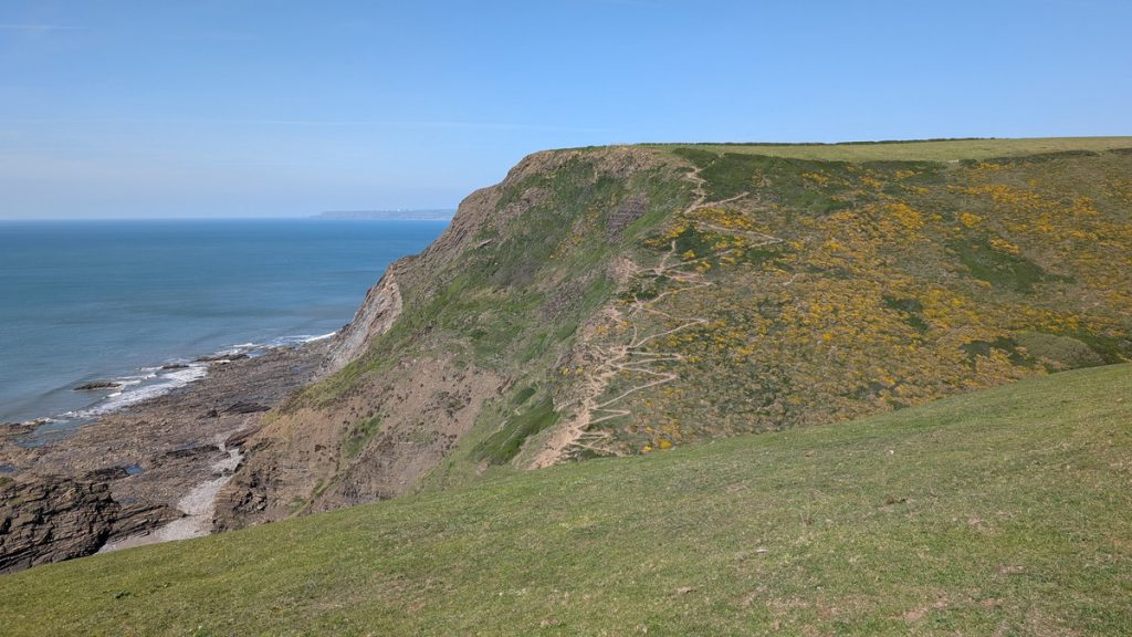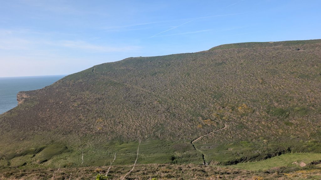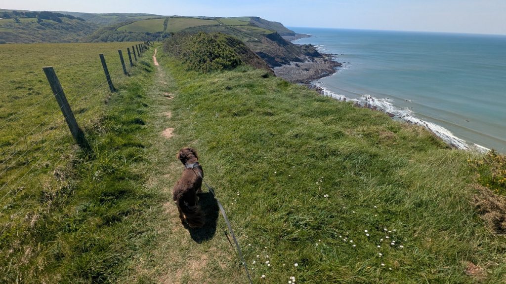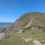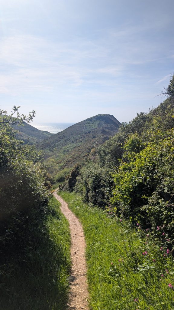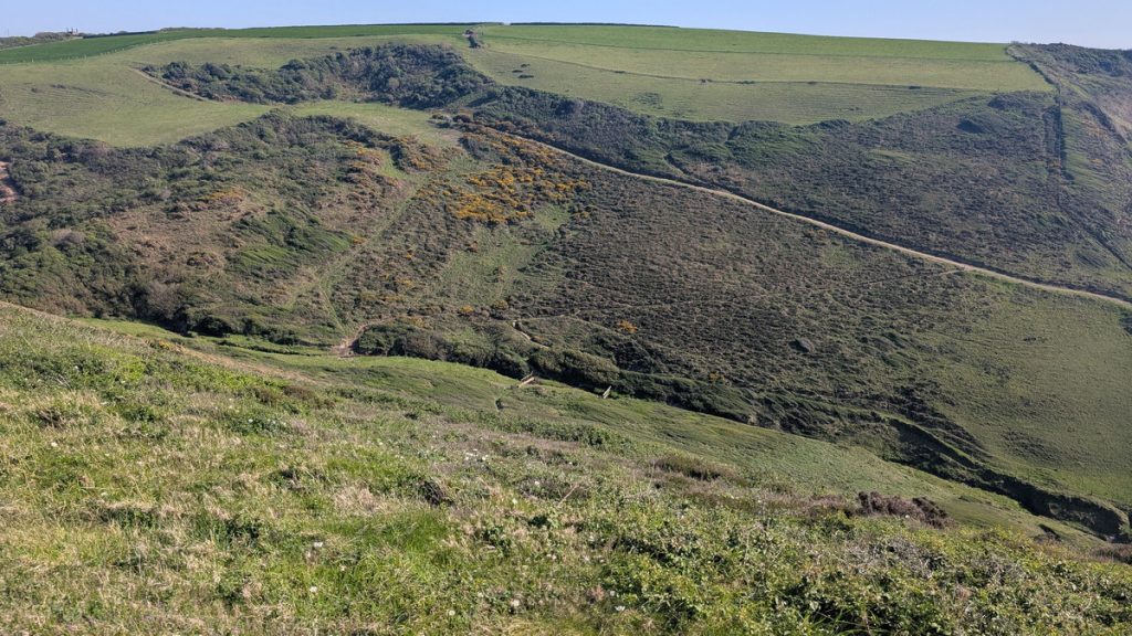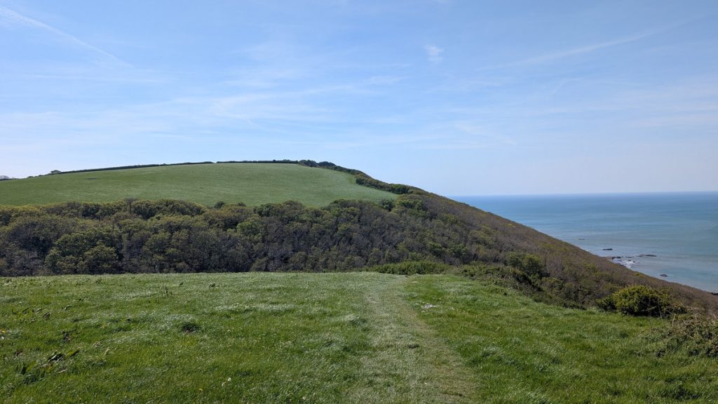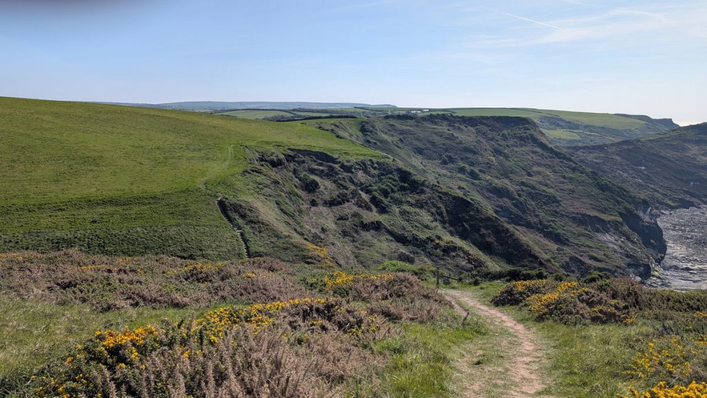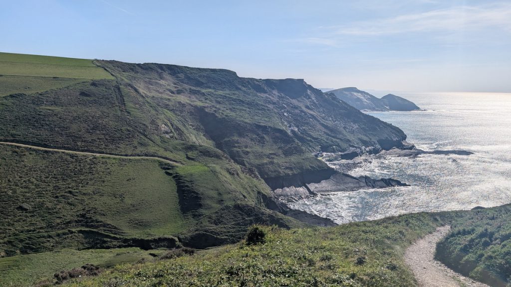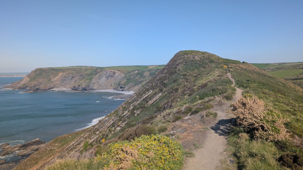 A short final dip before the path winds above Pencarrow Point and begins the descent into the village.