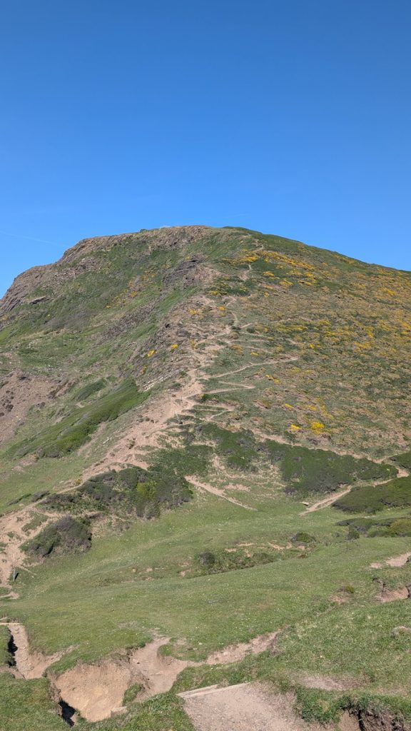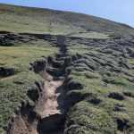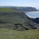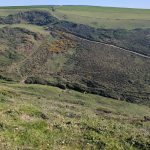 A long, steady climb to the wooded slopes of Dizzard, where the path follows the edge of ancient oak forest.