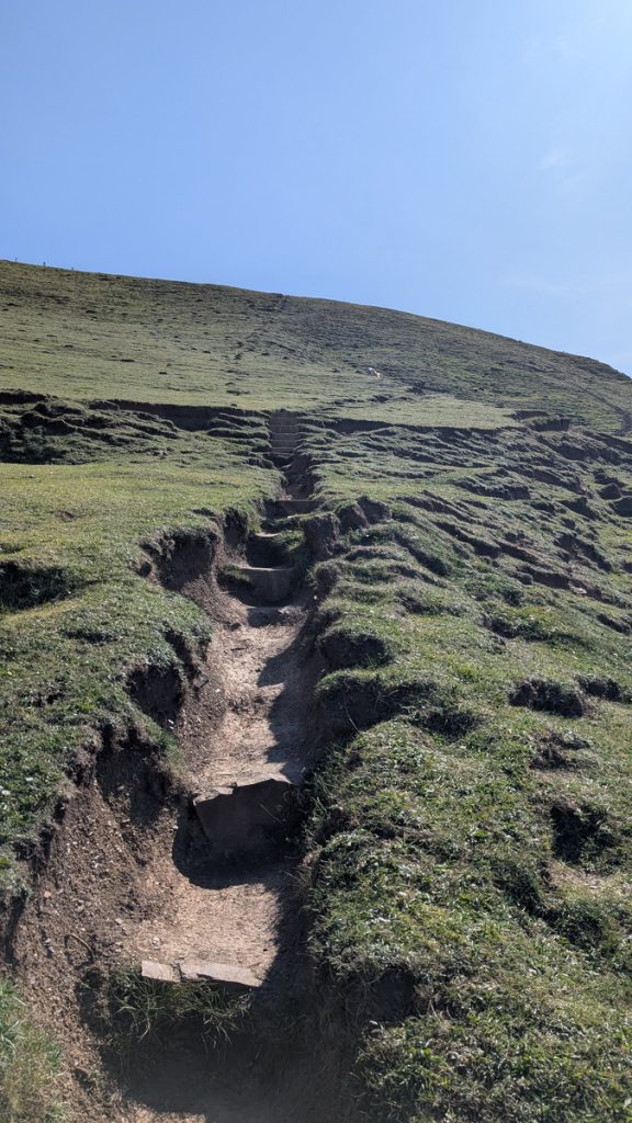 Another steep descent and climb, with zigzag paths down to a stream—ideal for cooling off.