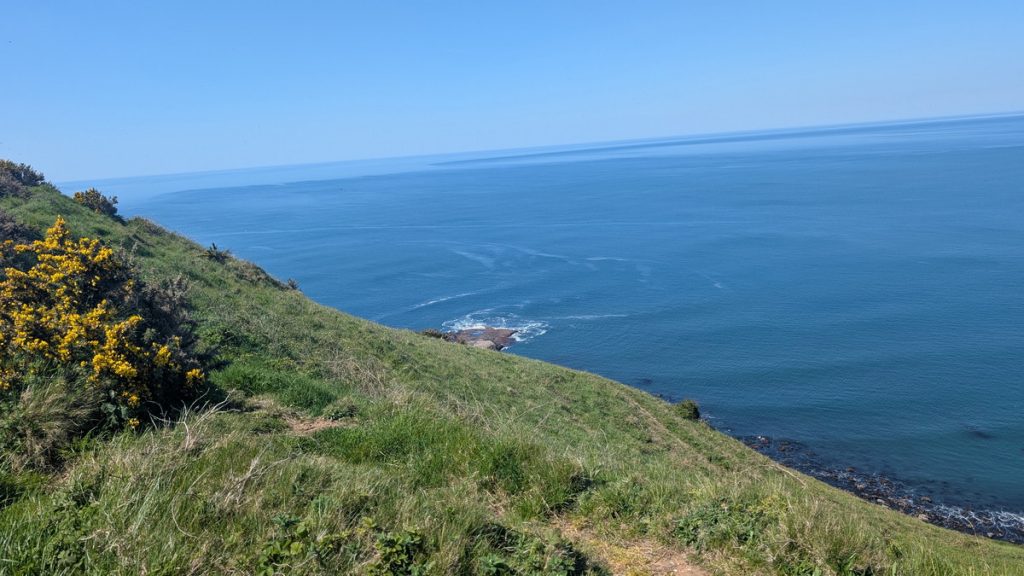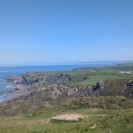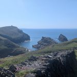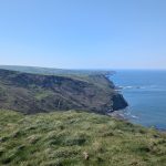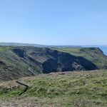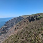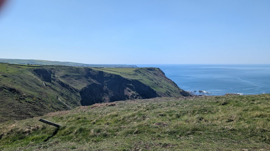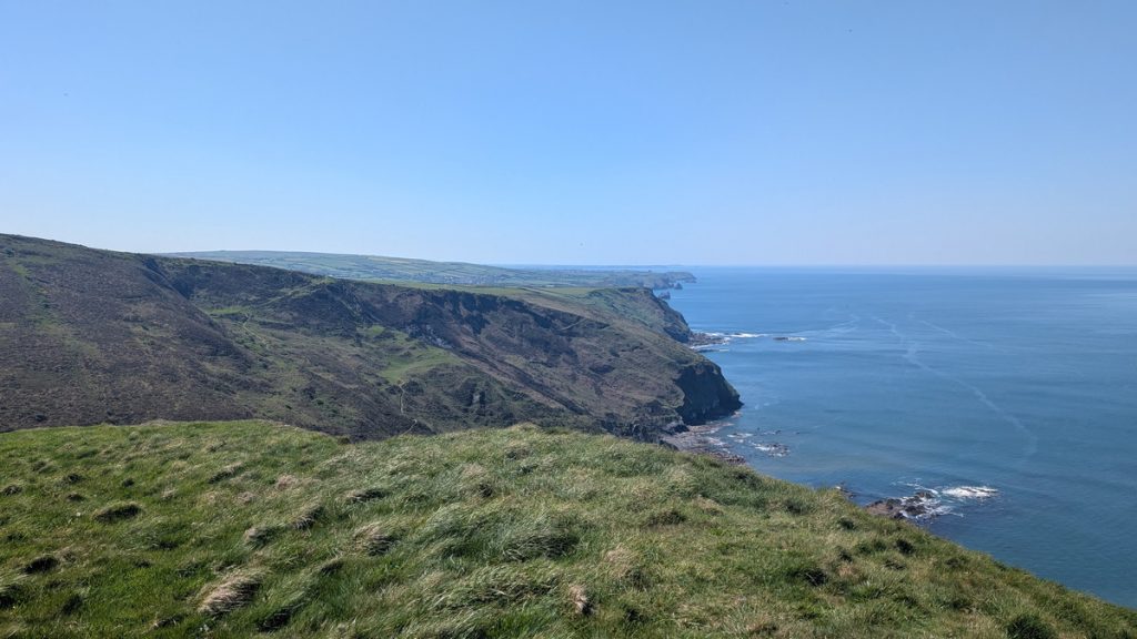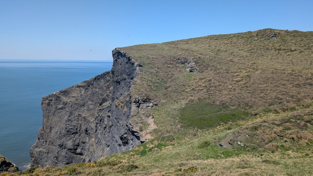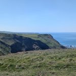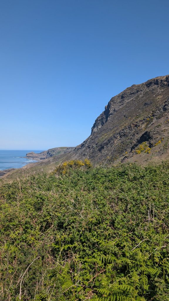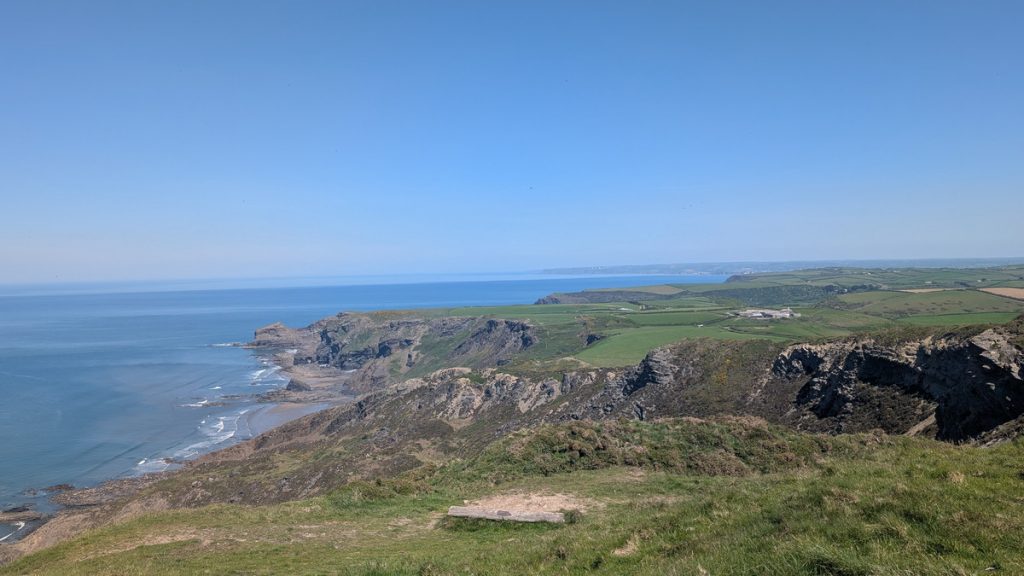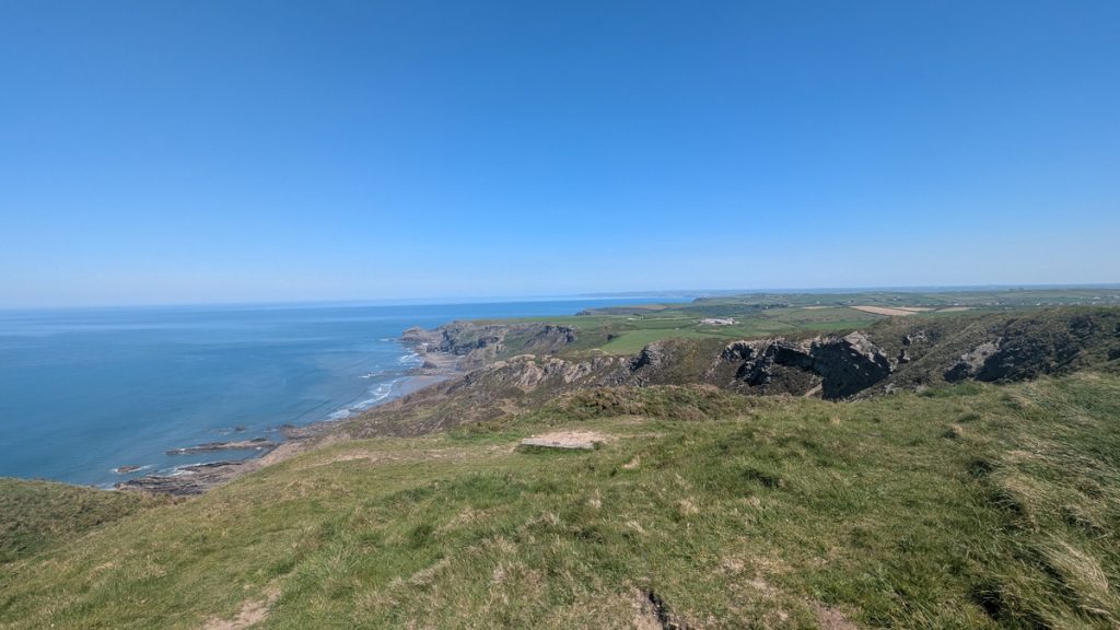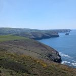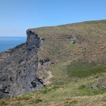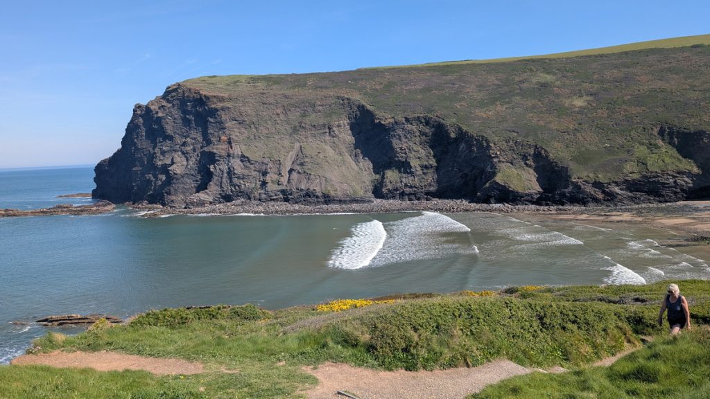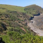 At 735 feet (224m), this is Cornwall’s highest sea cliff. The climb is steady and grassy, followed by a long descent to Rusey Beach.