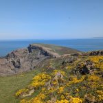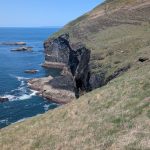 A remote stretch of cliff designated SSSI, known for rare butterflies and views of sea stacks like Gull Rock below.