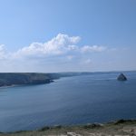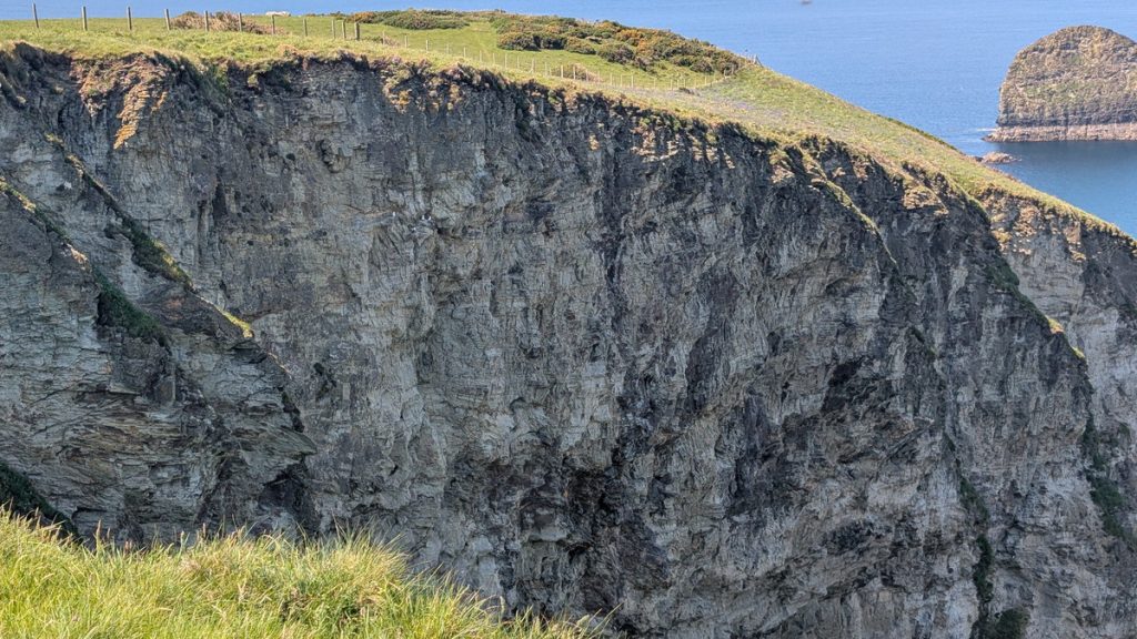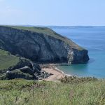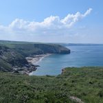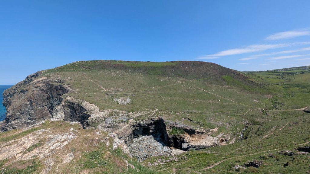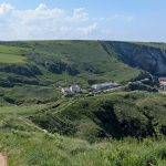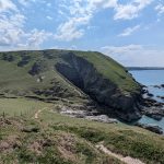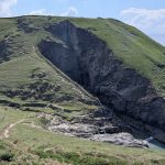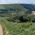 One of the day’s steepest descents and ascents through a narrow ridge and a dramatic chasm or ‘zawn’.