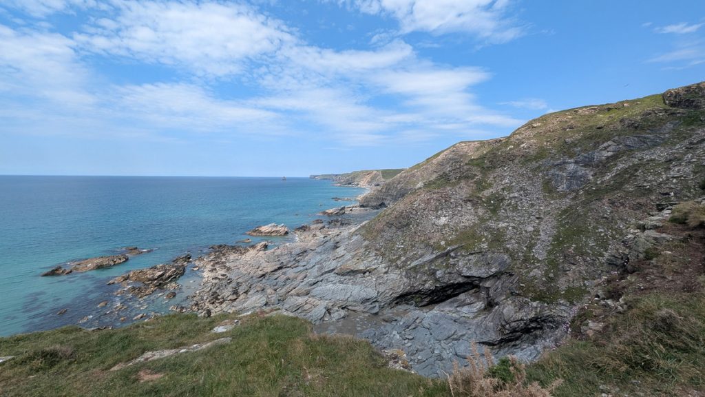 More demanding ups and downs—classic Cornish coastline, wild and remote.