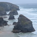 Iconic sea stacks rise like giants’ stepping stones. Though beach access is closed, cliff-top viewpoints offer incredible panoramas.