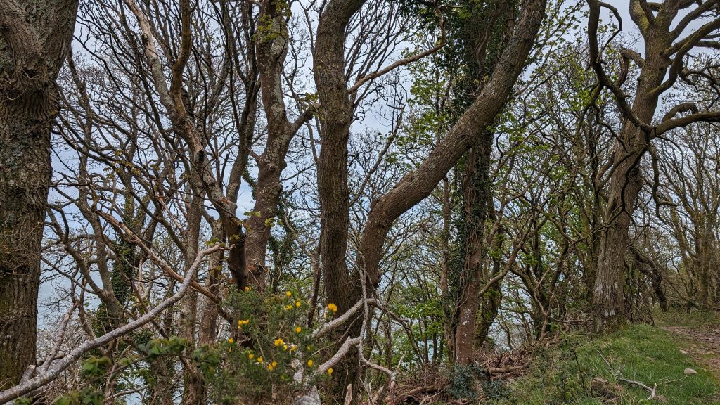 Leaving the trees, the trail follows the high coast path along Glenthorne and Foreland Point—wide coastal views, occasional glimpses across the Channel toward Wales on clear days.