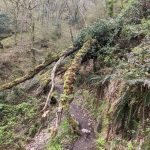 The path swiftly enters dense, green woodland—some of the longest coastal forest in England—offering shade and solitude through ancient combes and seasonal streams.