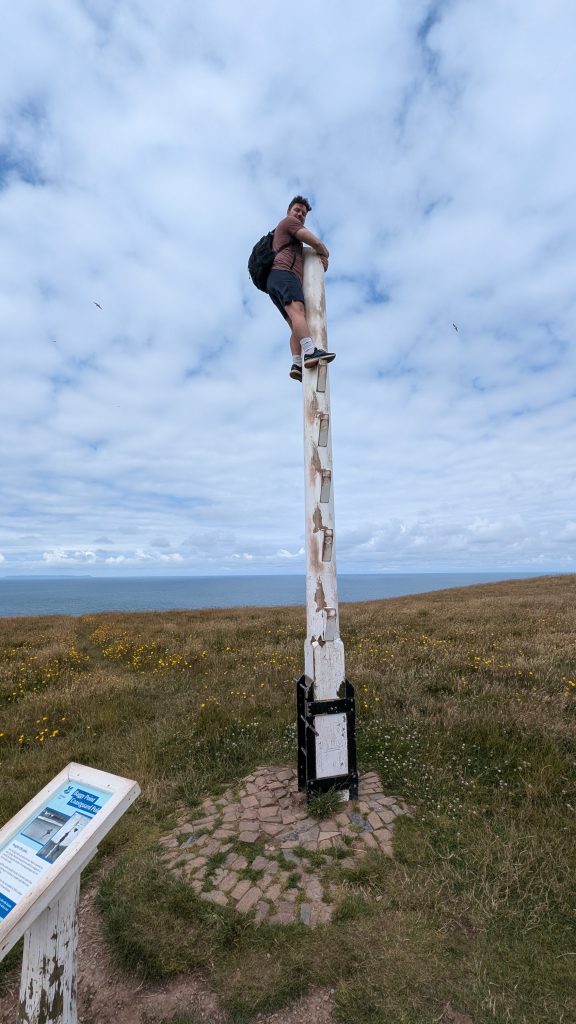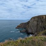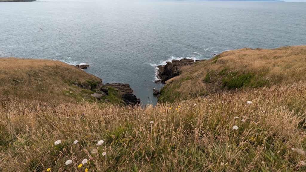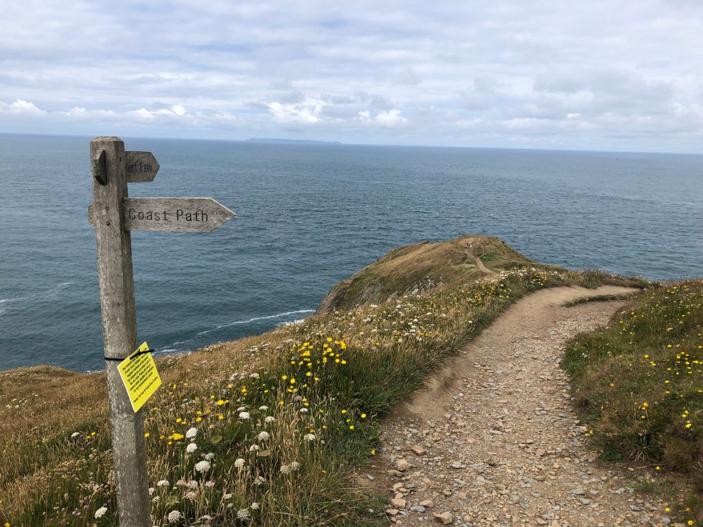 A gently rising headland with striking folded rock formations, rich coastal flora, and wide views to Lundy and Hartland Point.