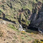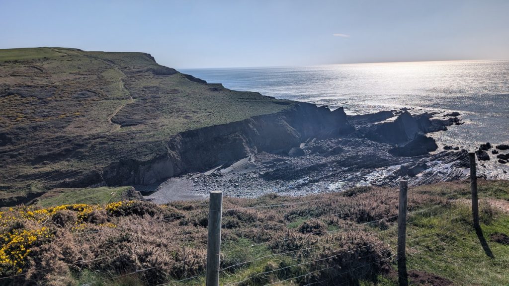 A remote cove once used by smugglers, now almost inaccessible, with towering cliffs and a currently defunct radar station above.