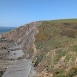 Spectacular folded cliffs of sandstone and shale, carved into jagged fins and ridges by sea and time.